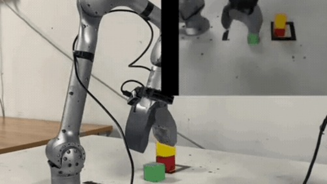 玩堆积木,稳稳当当。重点是,右上角小窗口呈现出世界模型对后续动作视频的预测,能发现和实际操作情形十分吻合。